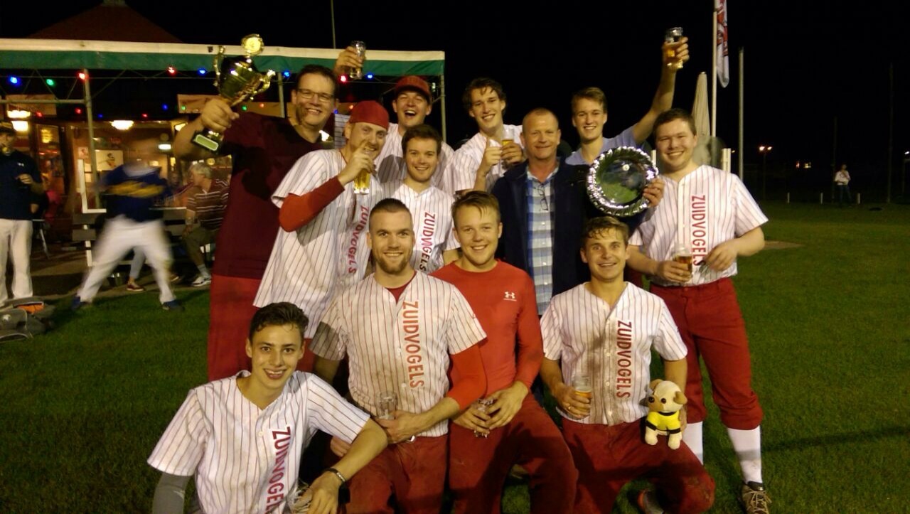 21-09-2014 14:23Na een zwaarbevochten overwinning (10-8) op HCAW en met hulp van de Hilversum Hurricanes (die Almere '90 2 over de knie legde) zijn wij afgelopen vrijdag kampioen geworden in de derde klasse D. Wat een superprestatie van dit team dat voor de helft uit ervaren spelers bestaat en voor de andere helft uit spelers die voor dit seizoen nooit eerder gesoftbald hadden. Het kampioenschap is uiteraard tot in de late uurtjes gevierd! Wij gaan ons nu voorbereiden op het Heren Softbal Toernooi bij Zuidvogels aanstaande zondag. Daarna is het op naar de tweede klasse!